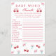 Lass den Spaß beginnen! 🍒 Challenge mit diesem bezaubernden Baby Word Rührei Spiel mit einer charmanten Aquarellkirsche und Blumendesign. Eine perfekte Aktivität, um jeden behalten, der unterhalten wird, während er die Mama-to-be feiert!