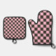 Cherry blossom checkered board pattern ofenhandschuh & Topflappen-Set