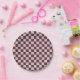 A brown and pink checkerboard pattern. Alternating squares create a balanced, symmetrical design. The tone is playful and visually striking.