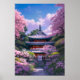 Inmitten eines atemberaubenden Kirschblütengartens steht ein kleiner Holztempel als bescheidenes Heiligtum, eingebettet in die zarte Schönheit der Natur. Die lebhaften rosa Blütenblätter schaffen eine bezaubernde Atmosphäre und zeichnen eine Szene der Ruhe und Anmut. Dieses Kunstwerk vereint den Zauber des Holztempels, der harmonisch von den flüchtigen Blüten umschlungen wird. Treten Sie ein in diese ruhige Oase, wo die sanften Flüstern des Windes und der sanfte Weg der Blumen Sie zu einem Reich der Ruhe und Kontemplation führen.
