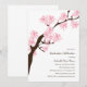 Diese Kirschblütenblüte mit einem Zweig rosafarbener Kirschblüten auf der links Kartenseite, während die Party-Details rechts in Braun angezeigt werden. Textfelder sind anpassbar - Einladungen können für jeden Anlass verwendet werden.