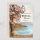 Original Brautdusche mit rosa Schmetterlingen auf einem blühenden Kirschbaum mit Blick auf eine fantastische Ozeanszene. Eine QR-Code-Vorlage wird hinzugefügt, um Ihnen den Zugriff zu erleichtern.