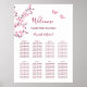 Niedliche Kirschblüten und zwei niedliche Schmetterlinge auf weißem Hintergrund. Hochzeitsempfang mit individuellen Braut- und Bräutigamen in einem eleganten, handgeschriebenen Skript und einer Sitzliste für 80 Gästernamen. Für Ihre Hochzeit im Frühling oder Sommerhochzeit. Matching Wedding Produkte erhältlich.