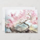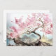 Ein majestätischer Pfau neben farbenprächtigen Vögeln, Set vor einer ruhigen Bergkulisse mit zarten Kirschblüten in voller Blüte.