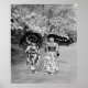 Altes Foto japanischer Kinder aus den 1920er Jahren, in traditionellem Kleid, das Regenschirme trägt und zwischen Kirschblüten spaziert. Gezeitenbecken, Washington, D.C. Fotograf aufgenommen März 28, 1925. National Foto Company Collection LOC Originalmedium: Glasnegativ.