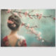 Kirschblüten und der Rücken eines orientalischen Mädchens in einem blühenden Kimono mit Blick auf einen türkisblauen Himmel. Dies ist ein digitales Mischmediendesign. Es ist Teil eines Set von drei. Besuchen Sie meinen Shop für die kostenlosen Designs zu diesem Set.