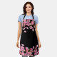 Schöne Schürze mit Kirschblüten auf schwarzem Hintergrund.