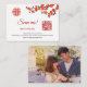 Auf weißem Grund blühen hübsche rote Kirschen. Mit einem doppelten Glückssymbol. Übereinstimmung mit meinem chinesischen Hochzeitstag-Anzug. Scannen Sie mir qr Code-Karte für Details auf Ihrer Hochzeitswebsite und uAwg online.