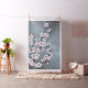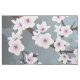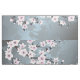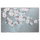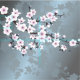 Dieser Stoff zeichnet sich durch einen eleganten, rosafarbenen Kirschblütenzweig auf einem schimmernden, staubblauen Hintergrund aus.