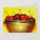 Eine Schüssel voll mit üppigen, reichen roten Kirschen gefüllt. Jede Kirsche ist perfekt reif und frisch gewaschen, eine köstliche Leckerei, die man an einem heißen Sommertag warte. Original Foto wurde in ein gemaltes Meisterwerk verwandelt, mit Pinselstrich Details und warmen Farben von Rot, Orange und Gelb. Ideal für Kinderzimmer, Obststände, Obstgärten, Kirschprodukte oder für eine gesunde Lebensweise mit Obst und Gemüse.