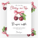 Laden Sie Ihre Gäste mit diesen Aquarellkirschen ein. Kirsche mit Blätter und rotem Bandbogen. Sie ist die Kirsche oben.