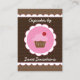 Das mächtige Kartendesign bietet eine einzigartige Drehung zur herkömmlichen Visitenkarte und bietet viel Platz für die köstlichen Details Ihrer Bäckerei. Vor einem zauberhaften, braunen Polka-Punkt-Hintergrund nimmt der Kuchen die zentrale Bühne ein und fängt das Wesen Ihrer reizvollen Leckereien ein. Der pinkfarbene Zuckerguss und die Kirsche auf der Oberseite tragen zu einem farbenfrohen und spielerischen Höhepunkt bei, der die Freude und Süße widerspiegelt, die Ihre Bäckerei jedem Kunden bringt. Ein originelles Mango Moon Studio Design.
