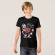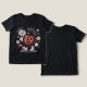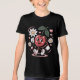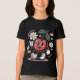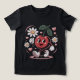 Der T - Shirt "Cherry Delight" mit einem fröhlichen Kirschmaskot, das einen Tag hält, ist von blauen, rosafarbenen Herzen und farbigen Blume umgeben. Dieses Retro-Pop ist ein schwarzer Hintergrund mit sanfter Beleuchtung und einer gemütlichen Textur. Ideal für Vintage Liebhaber, Kawaii-Sammler und spielerische Designfans.