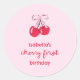 Cherry First Birthday Coquette Bow Favor Runder Aufkleber