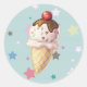Ein niedliches Design eines Vanilleeiskrebelkonus mit Schokoladenfleck, herzenförmigen Sprinklen in Regenbogenform und einer Kirsche oben. Sehr einfach, farbenfroh und bezaubernd. Der Eiskegel liegt vor einem pastellfarbenen Sternmuster. Ideal für diejenigen, die Eis, Leckereien, Konditorei, Süßigkeiten, Süßigkeiten, Sterne, niedliche Muster oder alles Mögliche, whimsical und Cutesy Liebe.
