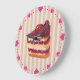 Whimsikal, Retro inspiriert Design zeigt Kirschschicht Kuchen Scheibe auf gestreiftem Hintergrund mit rosa Herzuhr Gesicht Kranz