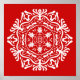 Dieses weiße Mandala sitzt auf einem hellen roten Hintergrund. Die Farbe ist energiegeladen und warm. Teil der Erghenn Mandala Kollektion.