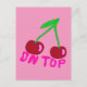 Cherry on Oben, lebendiges, farbenfrohes Design Postkarte