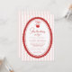 Cherry on Top Coquette Bow Pink Baby Shower Invitation - An adorable design featuring a hand drawn cherry hanging from a coquette bow with hand written and modern typography. The background is trendy pink and white stripes, the perfect way to celebrate your little one. Our easy to use template makes it so easy for your personalize your invitation. Cherry on top Coquette Bow Pink Baby Shower will be part of a Baby Shower Collection.