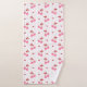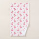 A seamless pattern featuring adorable pink cherries with playful hearts on a striped pastel background.