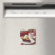 Niedlicher Magnet mit einer Illustration von Kirschkuchen mit Vanilleeis auf der Oberseite mit einer warmen Tasse Kaffee am Abend.