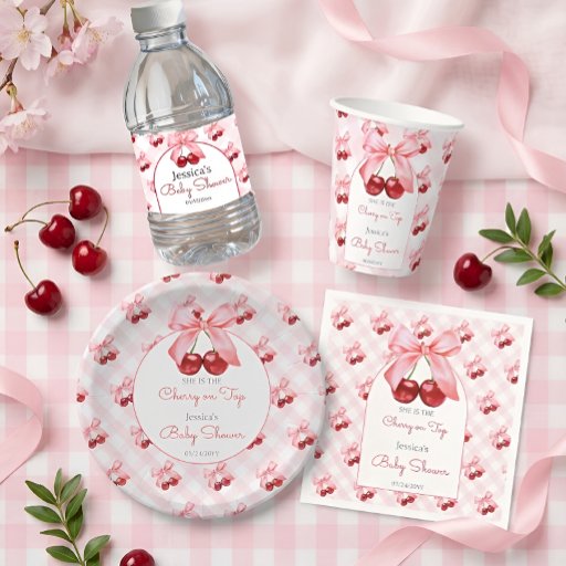 Cherry, Coquette pink bow, gingham Baby ShowerDesignt von Y K