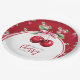 Feiern Sie die bald geborene "Cherry on top" mit diesem skurrilen und inspirierenden Paper-Teller in Kirschrot, Grün und Rosa Bändchenbogen für Ihre Girl Baby-Dusche