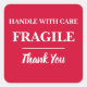 Cherry Red Fragile Label Square Sticker