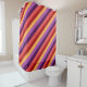 Duschvorhang mit einem bunten Motiv aus diagonalen Streifen in Kirschrot, Melonenrosa, Violett, Pflaume lila und Bananengelb.