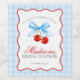 Jemand Cherry süß bindet den Knoten und du bist die Kirsche auf ihrer süßen Feier. Fügen Sie Ihrem Brautparty eine nostalgische Touch mit diesem Dekor aus blauem Gingham Cherry-Party hinzu, das mit kräftigen roten Kirschen, die mit einem Coquette-Bogen und einem pastellblauen Gingham-Muster verbunden sind, und das alles in einem roten, gewellten Rahmen. Mit diesem spielerischen Design, bereiten Sie sich auf süße Erinnerungen, die ein Leben lang halten!