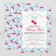 Cherry Sweet Blue Coquette Gingham First Birthday Einladung