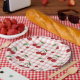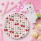 Cherry Themed Paper Plate Set with Pink Checkered Pappteller