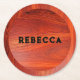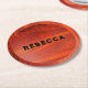 Cherry wood texture custom monogram. runder pappuntersetzer