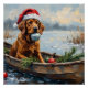 Celebrate the adventurous spirit of the Chesapeake Bay Retriever this Christmas! This rugged painting features a handsome Chessie, wearing a Santa hat, sitting proudly in a festive hunting boat filled with pine boughs and ornaments on a chilly winter morning. Perfect for Chesapeake owners, hunting dog enthusiasts, and anyone who loves a powerful, loyal companion. Ideal for unique cards, durable mugs, and gifts that capture the distinct spirit of the outdoorsy, hardworking Chessie.
