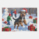 Ein starker Chesapeake Bay Retriever läuft durch die schneebedeckte Winterszene und trägt einen festlichen roten Weihnachtshut. Dieses lebendige Design hebt den gewellten Mantel der Rasse, die loyale Natur und den abenteuerlichen Geist hervor und erweckt gleichzeitig die Wärme und Freude der Ferienzeit. Ein herzlicher Winterurlaub voller festlichen Charme.