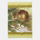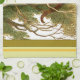 16" x 24" erblassen es-grün Küchentuch mit einem Vintagen Bild Alice im Wunderland-boshafter Cheshire-Katze in einem Baum. Grüne und gelbe Streifengrenzen. See zusammenpassende Stoffserviette, Papiercocktailserviette, Stoff-Tischset, PapierTischset und Untersetzer. Sehen Sie die gesamte Märchenland-Geschirrtuchsammlung im FOOD/BEV | Leinenabschnitt.