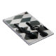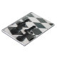 Foto der Ecke eines Schachbrettes mit schwarzen Stücken auf Zuhause.