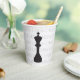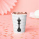 This chess design feature a black, grey and white color scheme with a classic black King chess piece.