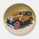A wie neu 1931 Chevrolet Special 4 Türendämpfer in den Originalfarben Coffee Cream, Turnpike Brown, Swamp Holly Orange und Schwarz. Es verfügt über Fenstertöne, Kofferraum, verchromten Steinschutz, Adler-Heizkappe, Blume Vasen und weißen Wänden. Vorgestellt über einen individuellen goldenen Hintergrund. CarChevy1931
