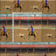 Cheyenne-Rodeo-Cowboy-Kalb-Roping Gewebe. Rodeoarena mit Cheyenne-Text auf dem Dach und einem Kalb Roper. Merken Sie bitte, dass dieser Entwurf einen strukturierten Blick hat (sehen Sie das nahe hohe), das dieses ein Teil einer Sammlung mit verschiedenen Rodeoereignissen mit diesem gleichen Rodeoarenahintergrund ist.