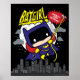 Karo aus Chibi Batgirl, die von einem packenden Haken schwingen, Batarang in der Hand.