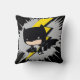 Karo aus Chibi Batman macht einen fliegenden Tritt vor einem blitzförmigen Hintergrund.