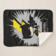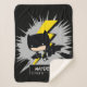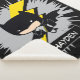 Karo aus Chibi Batman macht einen fliegenden Tritt vor einem blitzförmigen Hintergrund.