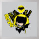 Karo aus Chibi Batman, der die großen Gebäude Gothams besteigt, indem er seinen Greiferhaken benutzt, um den Ruf des Bat Signals zu beantworten.