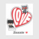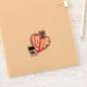 Karo Chibi Catwoman auf Chibi Batman in dieser bezaubernden Grafik, mit einem riesigen roten Herz mit dem Wort "Liebe".