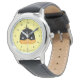 Kinder Edelstahluhr mit schwarzem Lederarmband