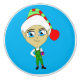 Eine der Elfen von Santas mit einem Geschenk