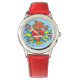 Kinderuhr aus Edelstahl mit rotem Lederarmband