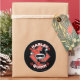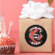 Karo Chibi Harley Quinn, als sie vor einer roten Polka Dot Diamond Kulisse mit ihrem Namen um sie geschrieben.