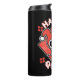 Karo Chibi Harley Quinn, als sie vor einer roten Polka Dot Diamond Kulisse mit ihrem Namen um sie geschrieben.